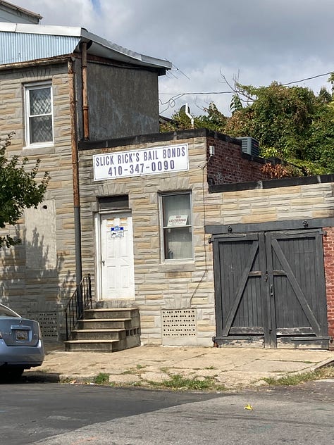 I take Hammonds Ferry Road from Glen Burnie to Baltimore on the second morning and for a while, I don’t know what kind of place I’m in. It’s a sort of weird industrial road through an area called Lansdowne. It’s a rundown area, but what houses there are seem to be maintained by an older generation of American poor. The homes are small and shabby but maintained and the residents are not frightening.