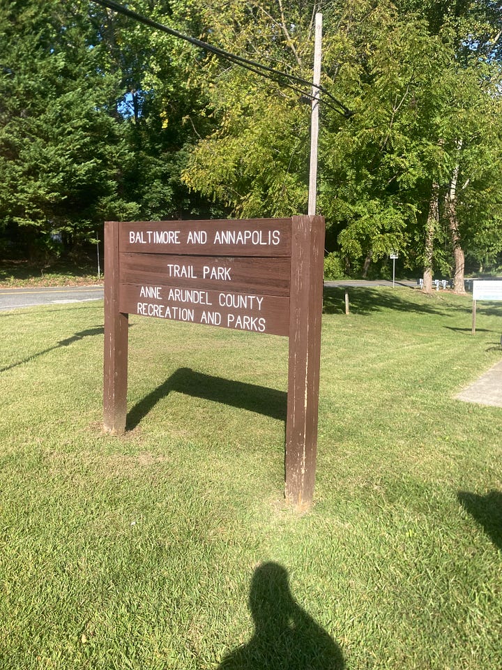 After a few miles on a mostly empty Governor Ritchie Highway, you reach the Baltimore and Annapolis trail. The trail winds through a series of nice suburbs almost to Glen Burnie. Ostensibly, these suburbs must contain families, but everyone on the path is old. I dip off the trail to go to a place called Navel Bagels. Catering to sailors you might think, but no, more retirees each buying more bagels than prudence or any physician would countenance.
