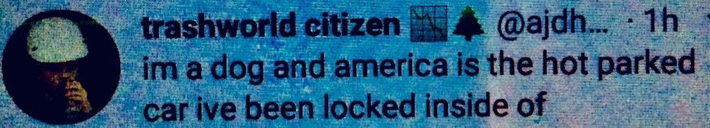 The black and white zombies are young and perfectly unified in their pursuit of oblivion. The long dream of American racial unity achieved via a self-administered lobotomy 6-12 times a day starting very early in the morning. The young American zombies sway and titter in the wind. You would like to cross the street to give them a respectful berth, but they are peppered too regularly on both sides.