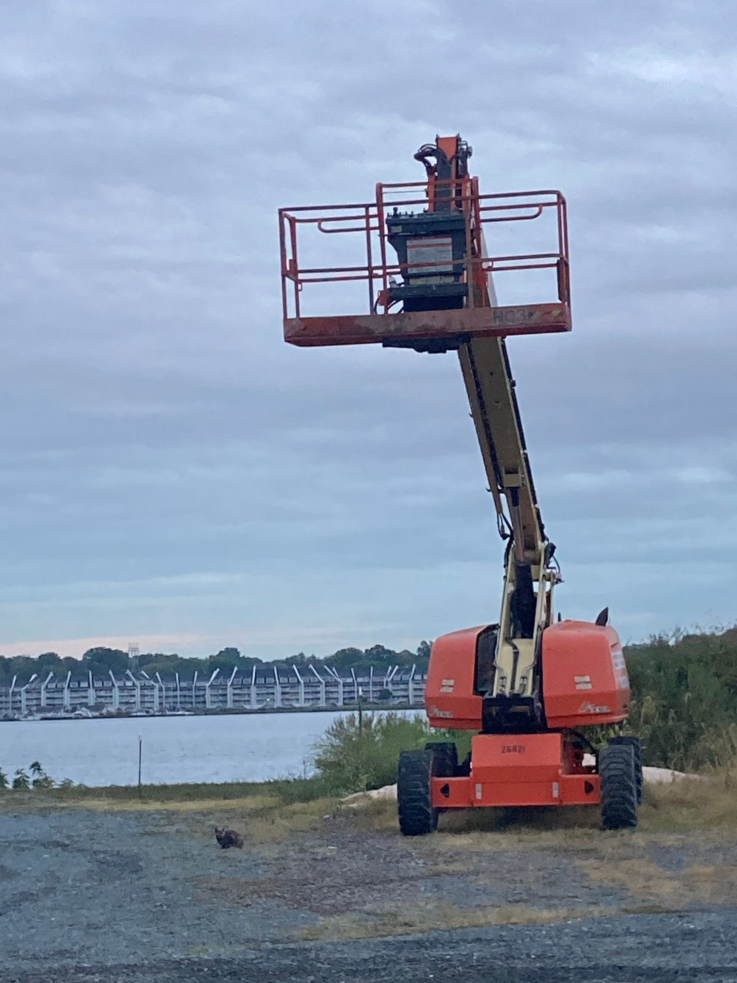 On the way back, there is a big empty parking lot with ocean access. A cat plays below a big piece of construction equipment. I sit at the water for a little while, and when I walk back to the lot there is a beautiful young woman with a parked motorcycle setting up a tripod to record videos of herself. It seems clear that we have something in common as she’s clearly producing some sort of travel content. She is simply too attractive and engrossed in her task for me to approach. Maybe if I’d had another drink…
